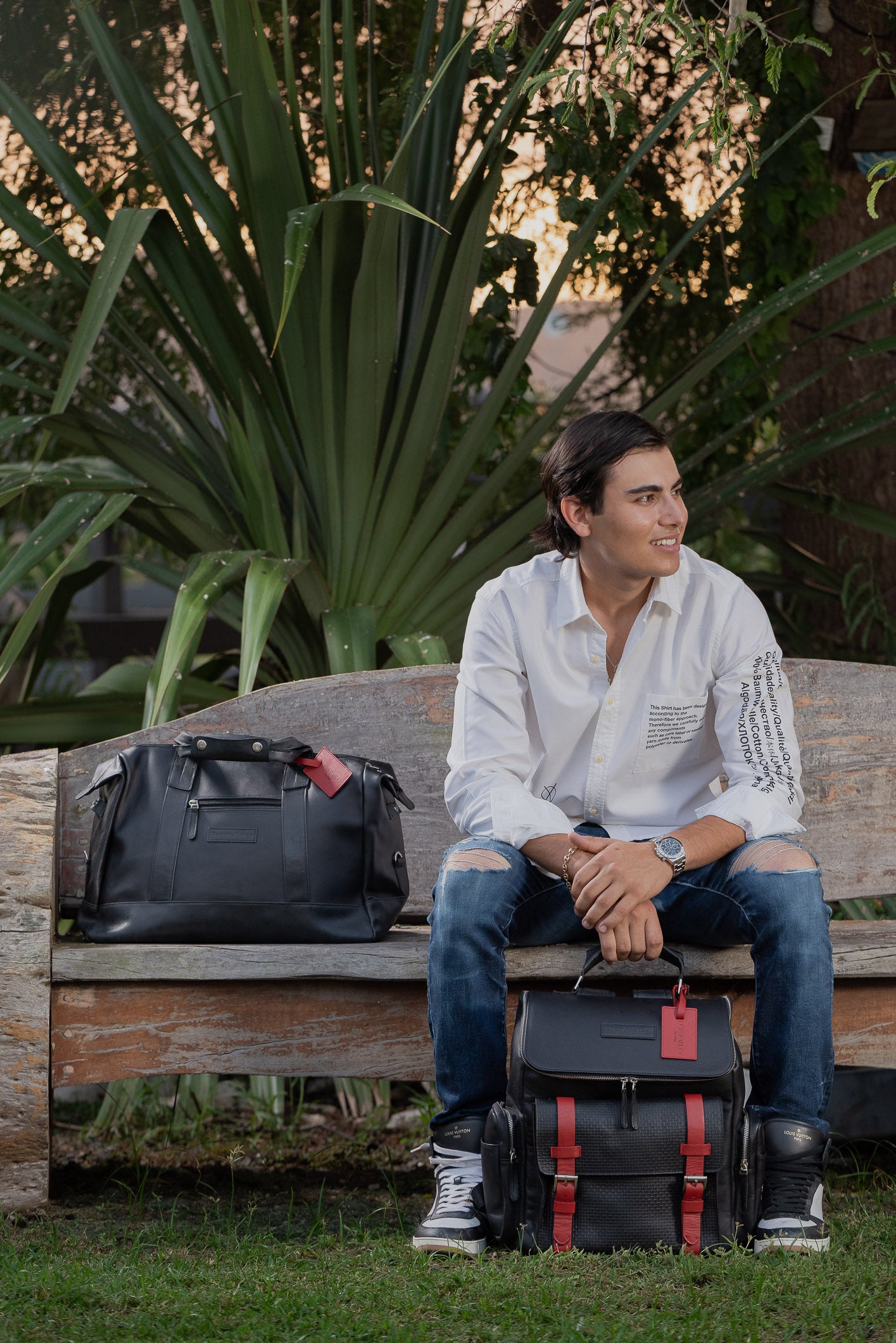 TRAVEL COLLECTION LOS PABLO DUFFLE BAG - BLACK AND CRIMSON RED